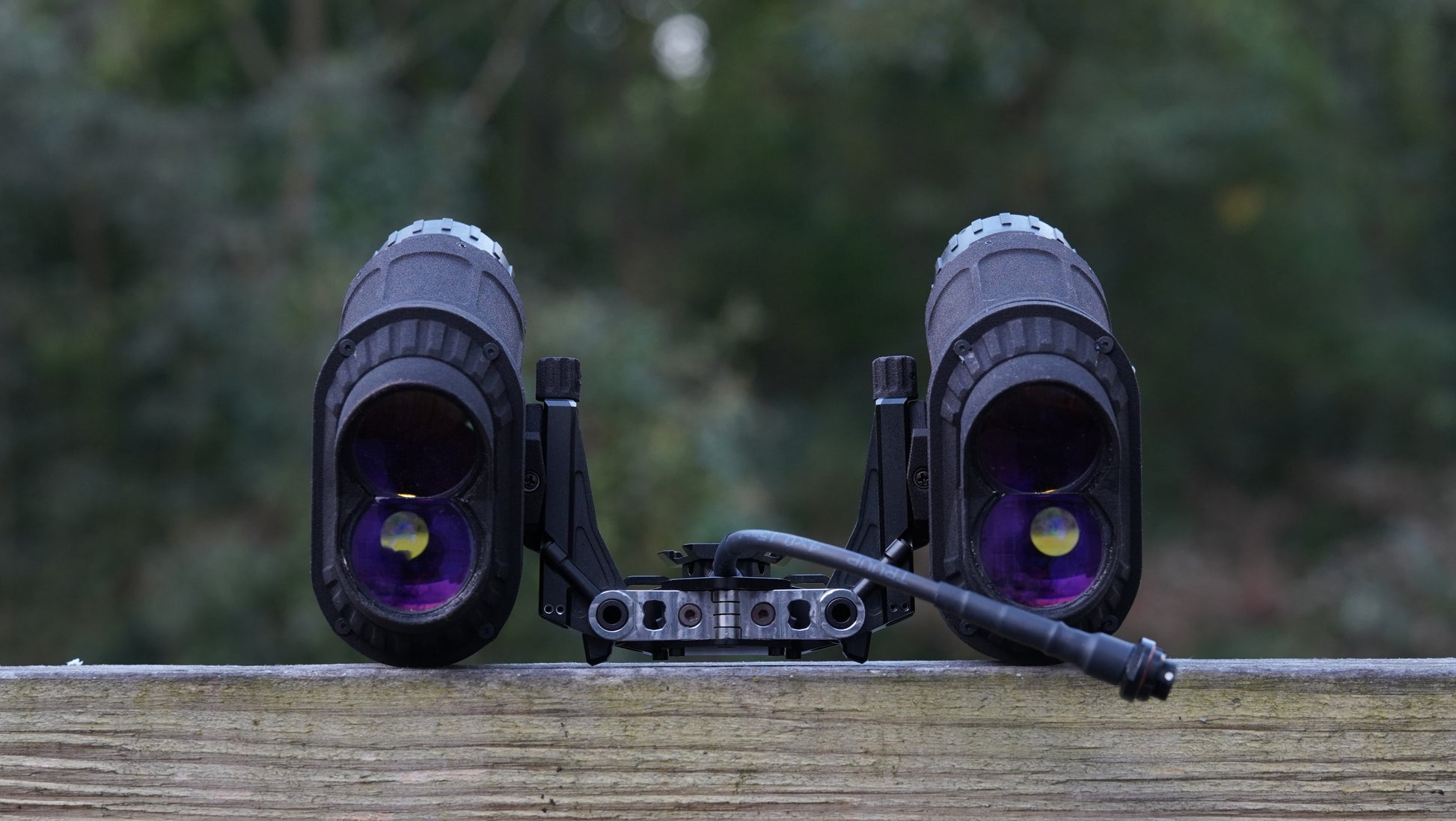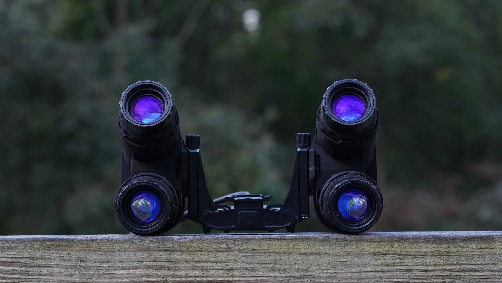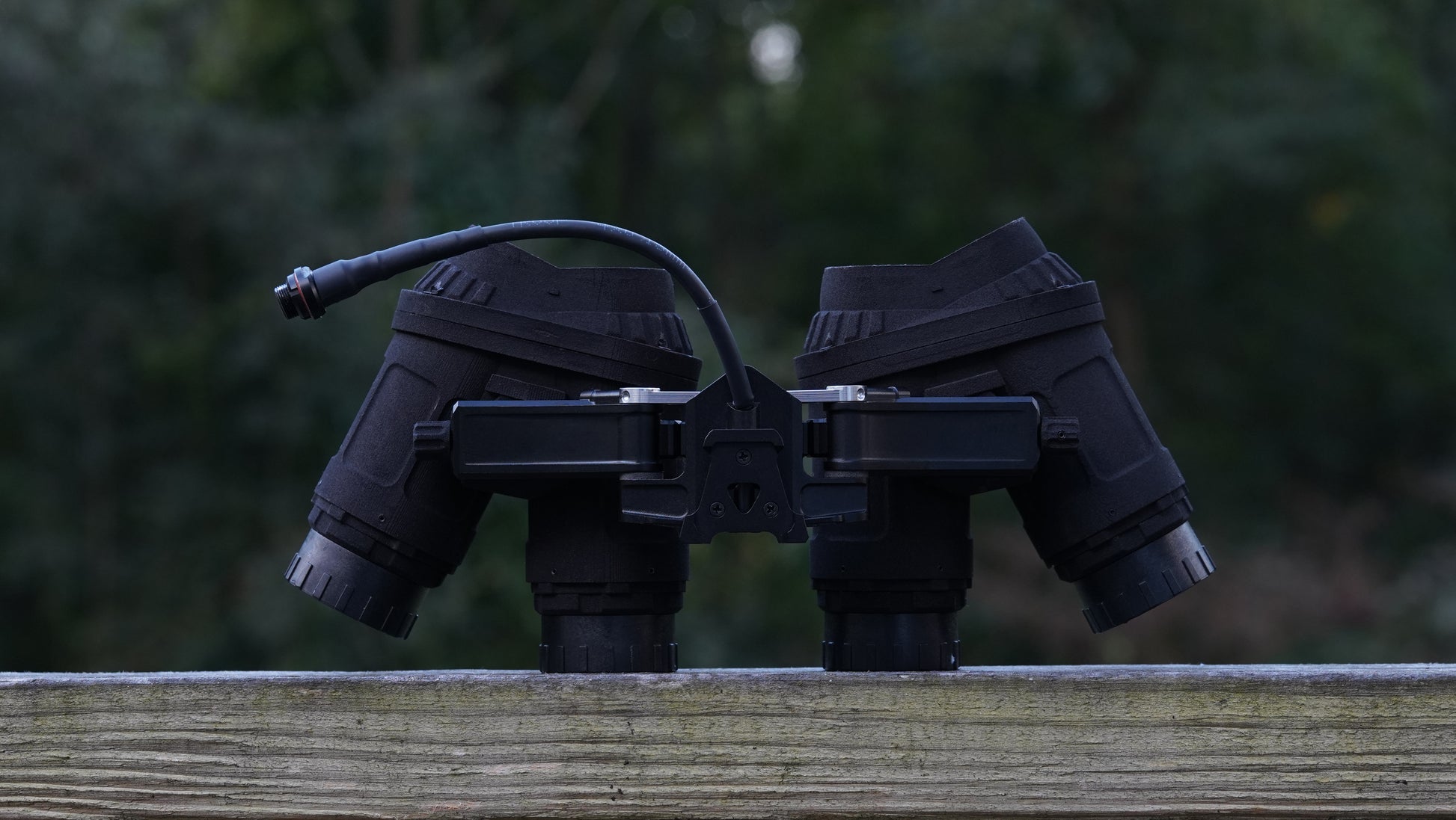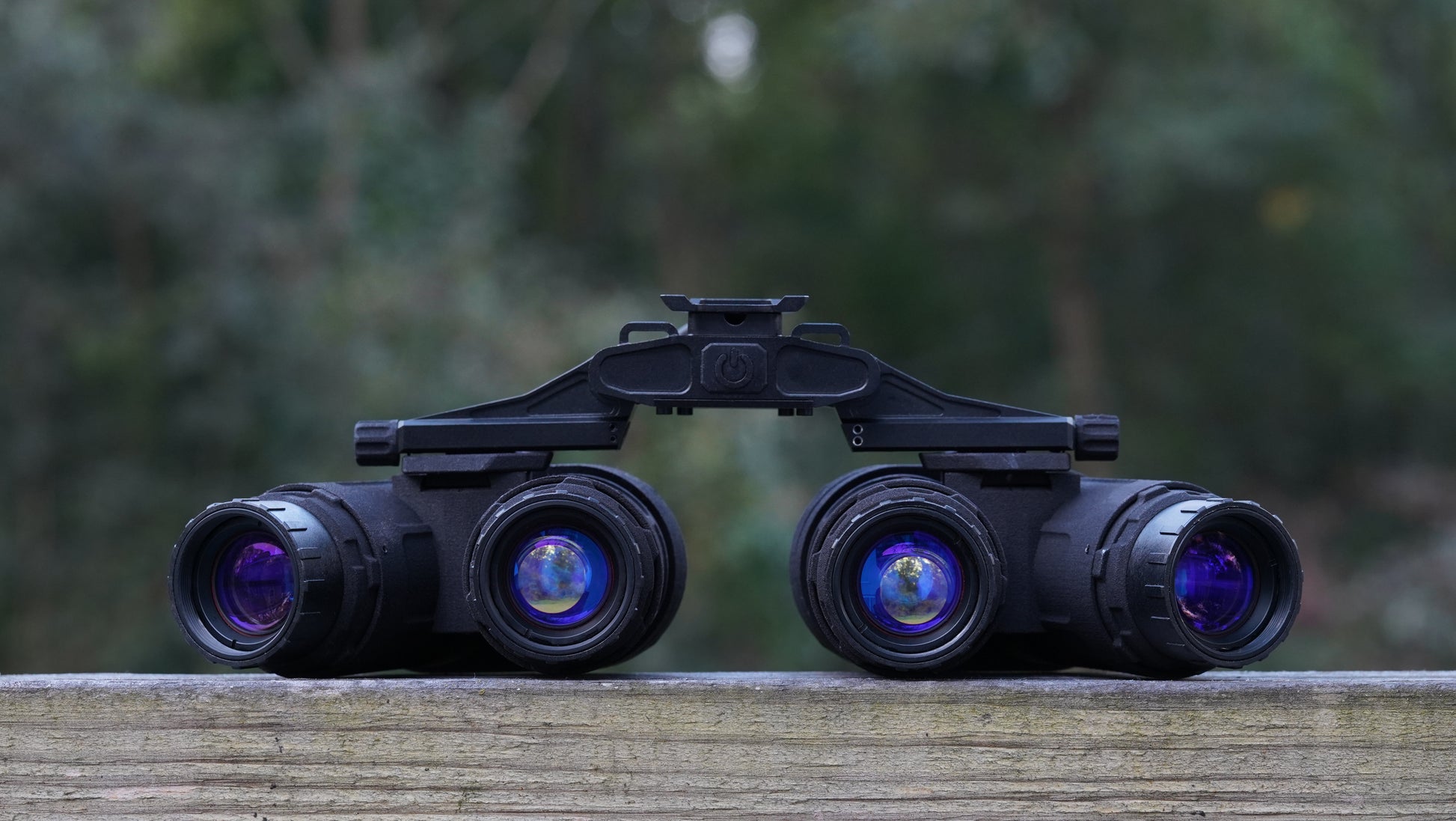 The Panoramic Night Vision Goggle "PNVG_14" Utilizes PVS-14 style optics allowing for more configuration for your use case. It features a articulating bridge that allows the goggles to sit lower when stowed similar to the profile of articulating binoculars, in turn reduces the center of gravity and reduces neck fatigue. At 840 grams it is a lightweight and affordable entry into the panoramic night vision scene.